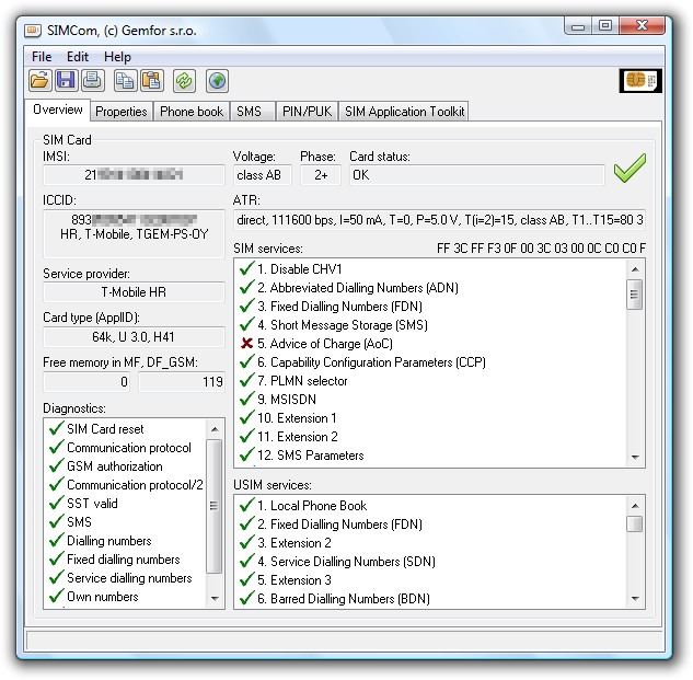 - View IMSI (EFIMSI), ICCID (EFICCID), service provider name (EFSPN)
