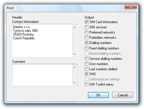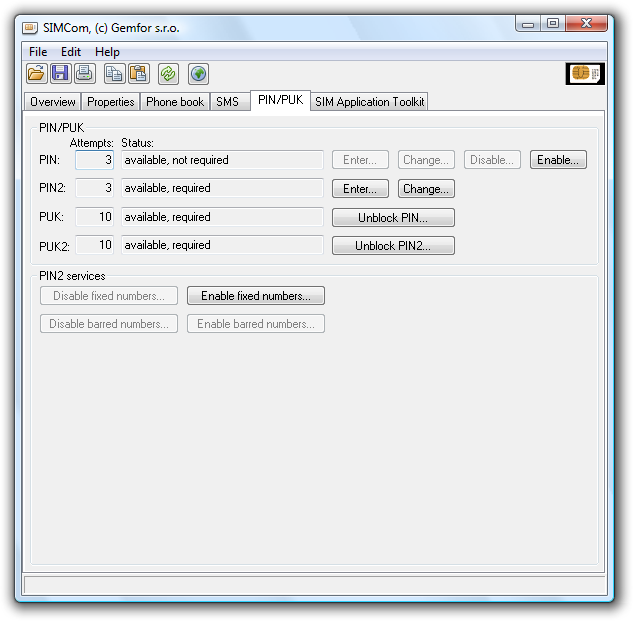 - Management of PIN, PIN2, PUK and PUK2 safety codes