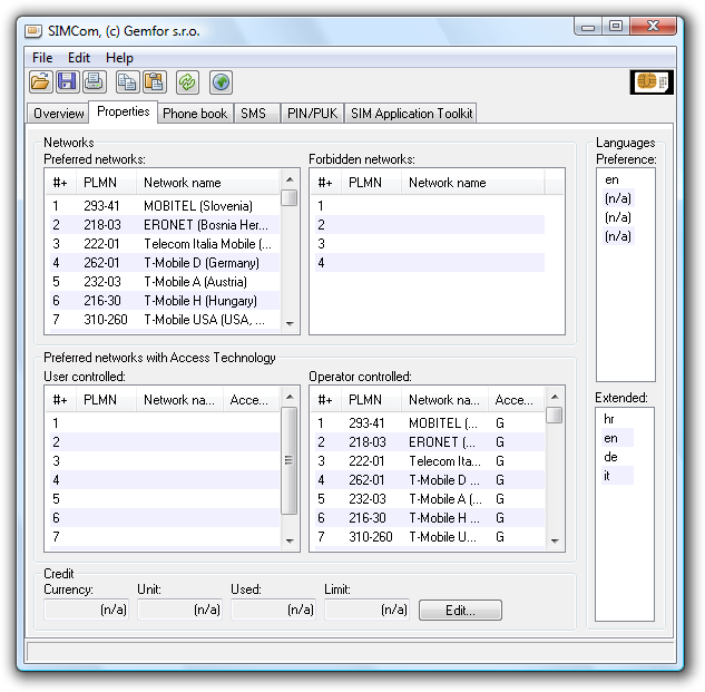 - Set preferred networks (EFPLMNsel), forbidden networks (EFFPLMN) and user controlled preferred networks with Access Technology (EFPLMNwAcT)